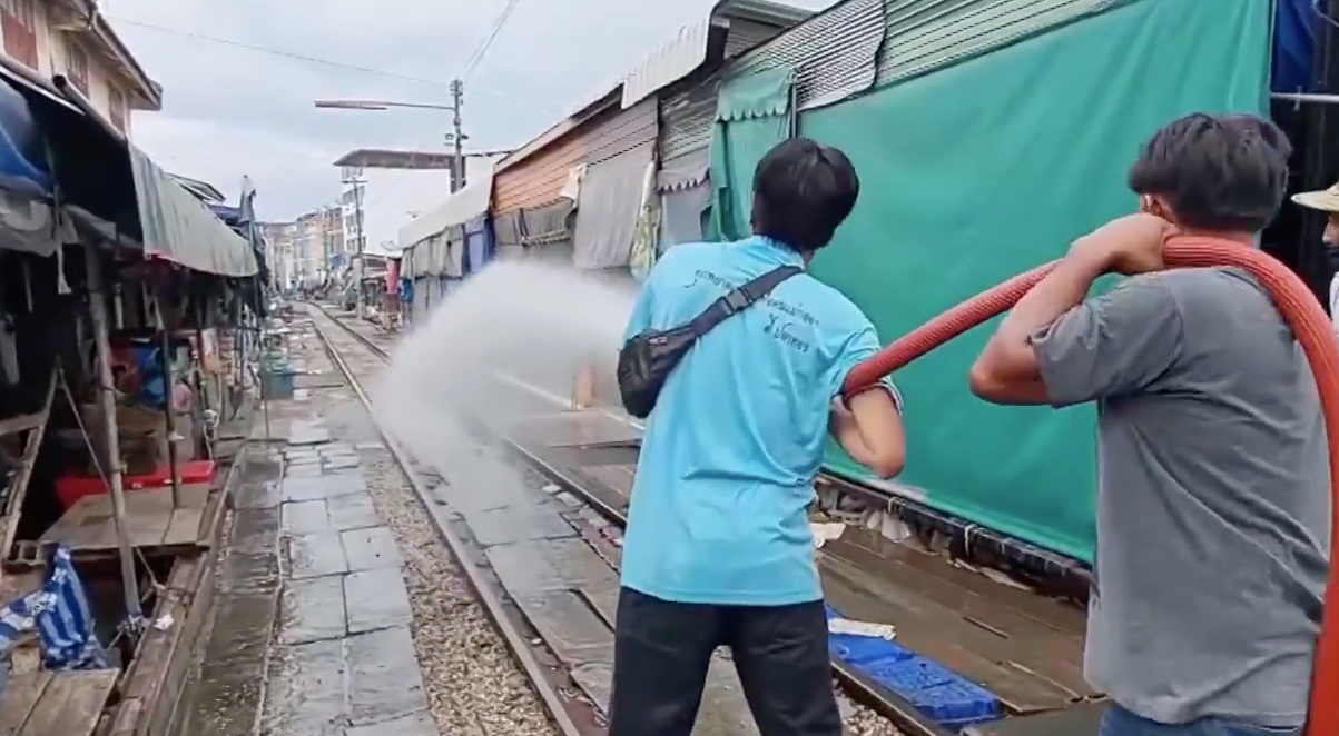 เมื่อช่วงบ่ายที่ผ่านมา นายสมชาย ตันประเสริฐ นายกเทศมนตรีเมืองสมุทรสงคราม นำพนักงานเทศบาลเมืองสมุทรสงคราม พร้อมรถน้ำรวม 3 คัน ลงพื้นที่ปูพรมฉีดน้ำผสมน้ำยาฆ่าเชื้อในอัตรา 1 ต่อ 3,500 ล้างทำความสะอาดตลาดสดเทศบาลเมืองสมุทรสงคราม, ตลาดร่มหุบ, ตลาดธนวัท, ตลาดเสี่ยโค้ว, ตลาดเจ๊หมวย, ตลาดผลไม้ และหน้าตึกหลังตลาดผลไม้ทั้ง 2 ฝั่ง รวมถึงสถานีรถไฟสายแม่กลอง ตลอดจนถนนประสิทธิ์พัฒนา ตั้งแต่หน้าป้อมตำรวจ ถึงธนาคารกรุงไทย สาขาแม่กลอง และถนนบริเวณโดยรอบตลาดแม่กลอง ขจัดสิ่งปนเปื้อน ฆ่าเชื้อโรคต่างๆ รวมทั้งเชื้อโควิด-19 ที่อาจปนเปื้อนบนพื้นดินภายในตลาด และบริเวณพื้นผิวถนน เพื่อสร้างมั่นใจให้กับประชาชนที่มาใช้สอยในตลาดอีกด้วย