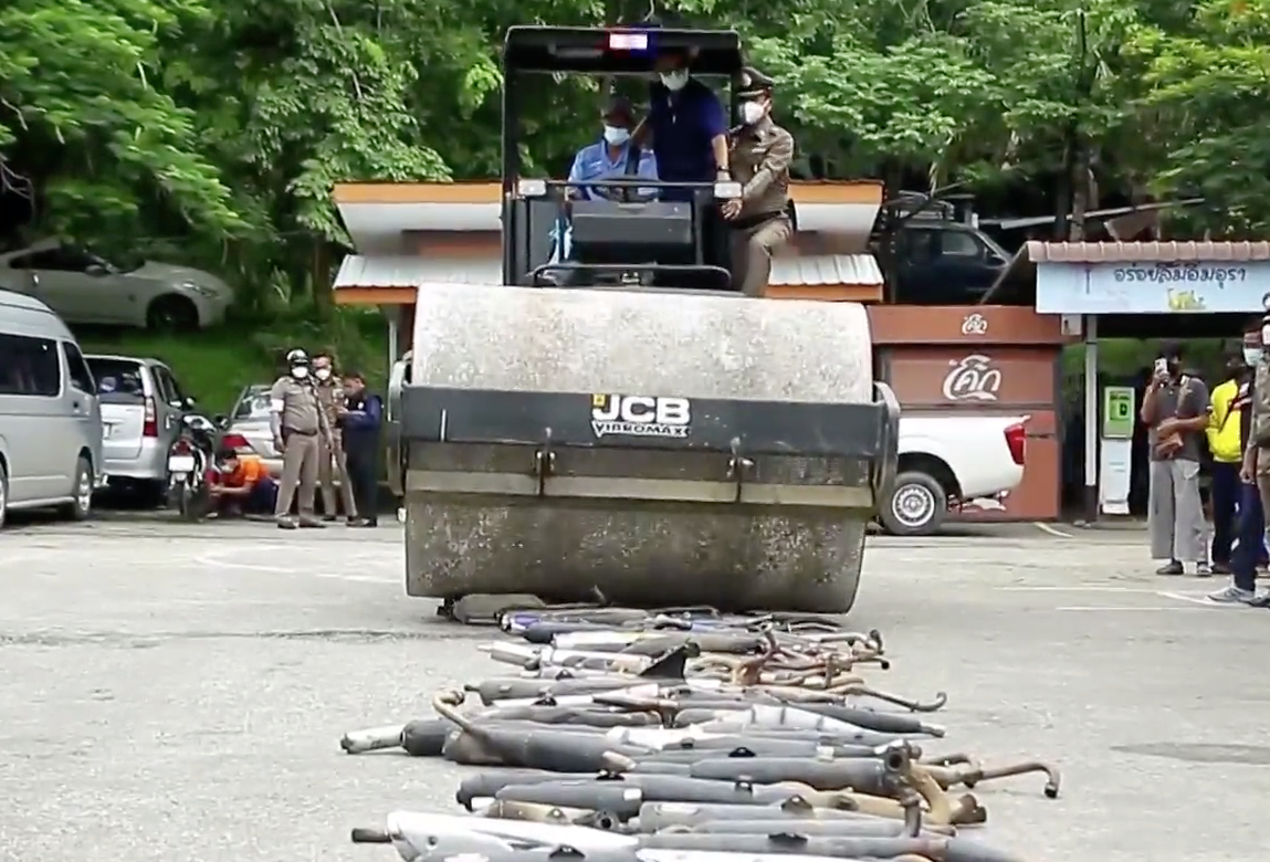 สภ.สอยดาว อ.สอยดาว จ.จันทบุรี เปิดโครงการ “ท่อแลกไข่ใส่ใจบุตรหลานผ่านวิกฤตโควิด-19” มีกลุ่มวัยรุ่นที่นิยมความเร็วและเสียงดังของท่อไอเสียรถจักรยานยนต์นำท่อไอเสีย 120 ท่อ มาร่วมโครงการ วางเรียงกันเป็นแถว ด้านหน้า สภ.สอยดาว ก่อนที่กลุ่มนักบิดต่างนำท่อไอเสียไปมอบให้เจ้าหน้าที่ พร้อมกับรับไข่ไก่ไปคนละ 1 แผง จากนั้นใช้รถบดถนนเดินเครื่องทับท่อไอเสียทั้งหมดทิ้งทันที