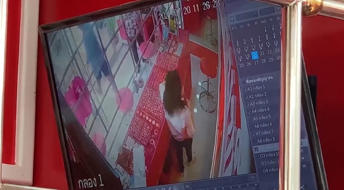 สอบถามพนักงานในร้าน ทราบว่า มีสินค้าในร้านเป็นสร้อยคอทองคำ จำนวน 1 เส้น น้ำหนัก 2 สลึง มูลค่าประมาณ 10,000 บาท หายไป และสงสัยว่ามีลูกค้าคนหนึ่งที่ทำทีเข้ามาขอซื้อทอง นำเอาไปโดยไม่ได้ชำระเงิน เจ้าหน้าที่จึงตรวจสอบกล้องวงจรปิด พบมีชาย 1 คน สวมหมวกแก๊ปสีแดง เสื้อกันฝนสีฟ้าทับบนเสื้อแขนยาว สวมหน้ากากอนามัย เข้ามาขอดูทองรูปพรรณ ซึ่งพนักงานของร้านได้ยื่นสร้อยคอทองคำให้ดูครั้งละเส้นหลายครั้ง โดยหลังจากดูแต่ละเส้นแล้วลูกค้ายังไม่พอใจ ก็จะนำไปเก็บแขวนไว้ที่เดิม และนำเส้นใหม่ออกมาให้ดูผ่านราวโลหะหน้าร้าน แต่จากภาพในกล้องพบว่า มีอยู่ช่วงหนึ่งชายคนดังกล่าวได้นำสร้อยทองใส่ในกระเป๋า และทำทีเป็นดูต่อ ก่อนจะเดินออกจากร้านไปโดยพนักงานไม่ทันสังเกต เจ้าหน้าที่ตรวจสอบลักษณะบุคคล เพื่อเร่งติดตามตัวมาดำเนินคดีตามกฎหมายต่อไป. – สำนักข่าวไทย