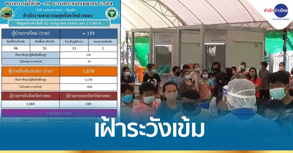 สถานการณ์โควิด-19 ในต่างจังหวัด ที่อ่างทองมีผู้ติดเชื้อโควิดพุ่งเกินร้อยติดต่อเป็นวันที่ 2 โดยตัวเลขเมื่อวานนี้ มีผู้ติดเชื้อรายใหม่เพิ่ม 159 คน ให้มียอดผู้ติดเชื้อสะสม 1,678 คน