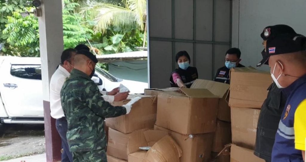 หน่วยเฉพาะกิจจงอางศึก กองกำลังสุรสีห์ สนธิกำลังตำรวจตรวจยึดหน้ากากอนามัยยี่ห้อต่างๆ กว่า 130,000 ชิ้น ที่บริเวณจุดตรวจช่องสิงขร กองร้อยตำรวจตระเวนชายแดนที่ 146 คุ้มไร่เครา บ้านด่านสิงขร ต.คลองวาฬ อ.เมือง จ.ประจวบคีรีขันธ์ พบถูกซุกซ่อนมาในรถกระบะทะเบียนประจวบคีรีขันธ์