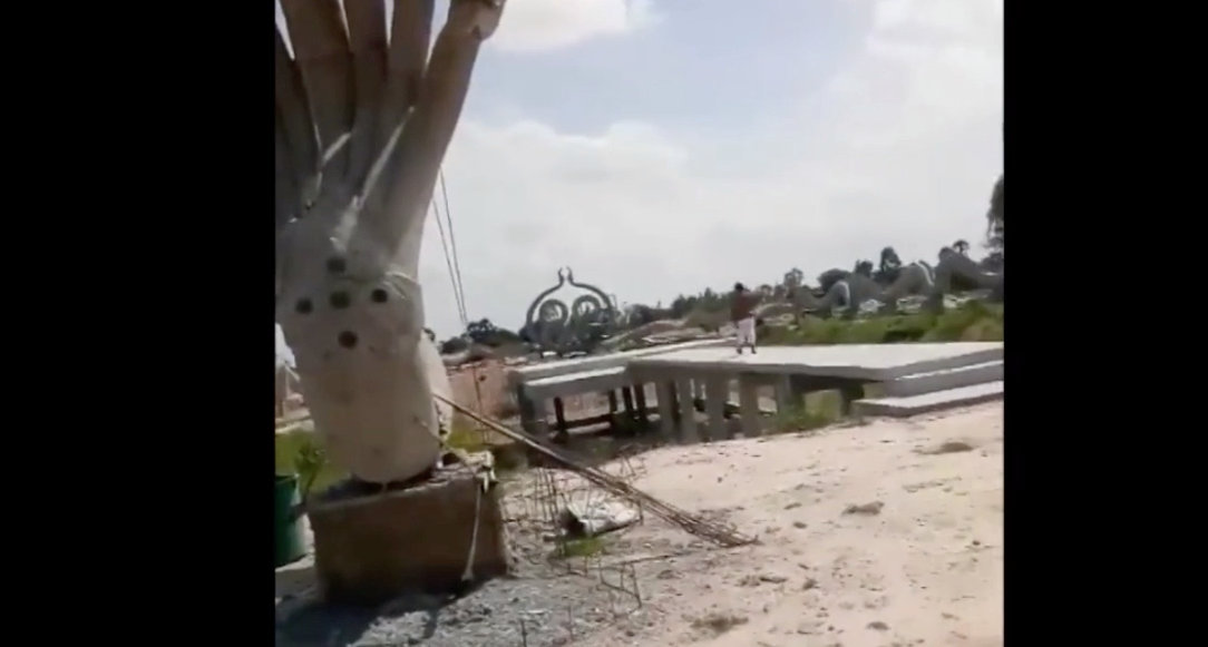 นครราชสีมา 23 ก.ค.- แม่น้ำหนึ่ง ขวัญใจคอหัวถูกชายคนหนึ่งเข้าคุกคาม ขู่จะทุบพญานาคที่เธอกำลังสร้าง