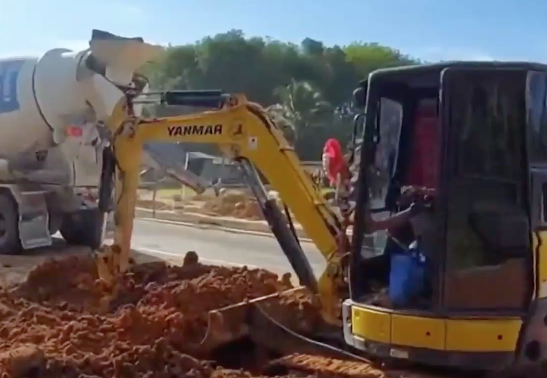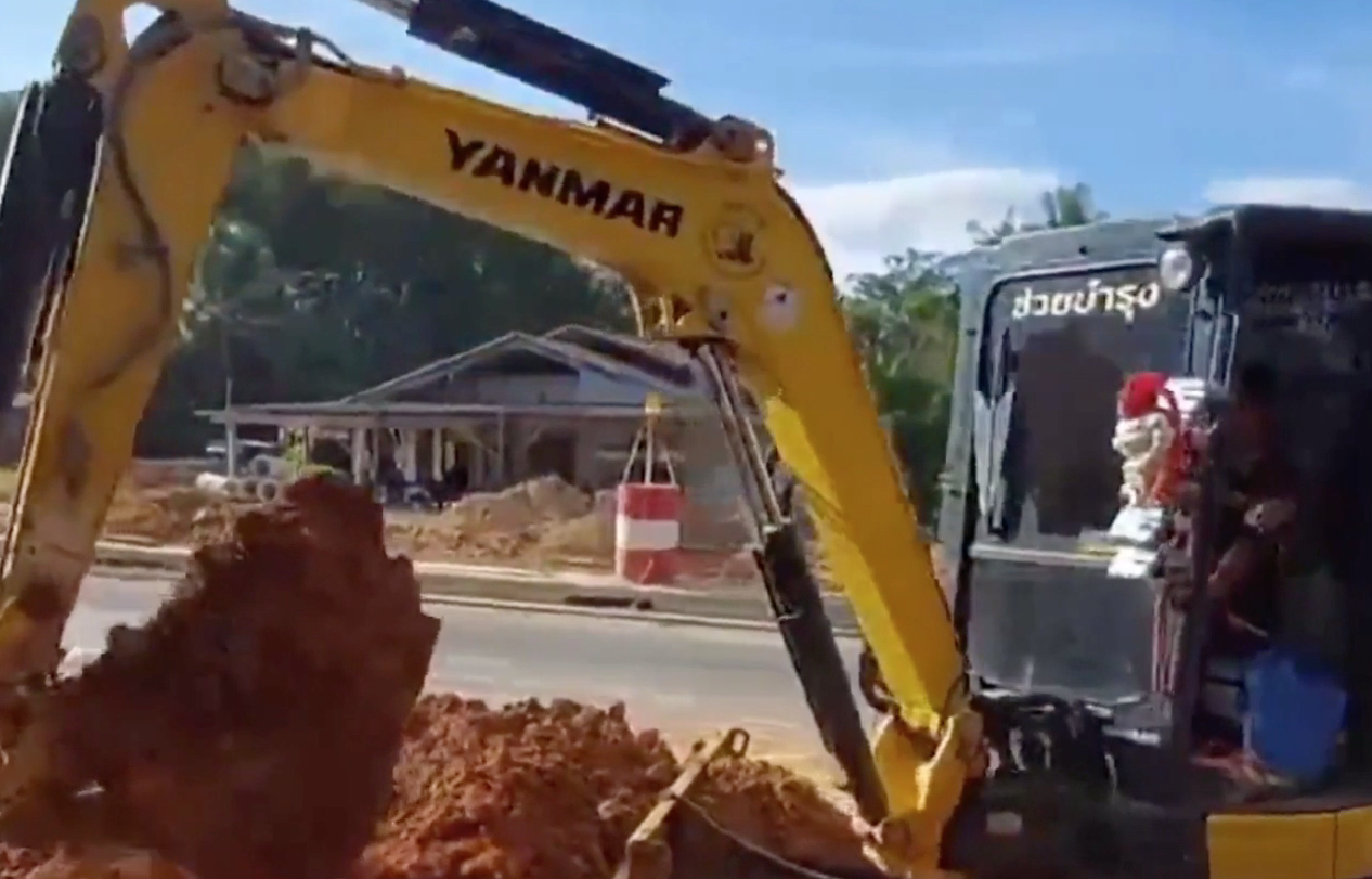 เด็กชายธีระเดช หวานดี หรือน้องโอม อายุ 11 ปี เรียนอยู่ชั้น ป.5 โรงเรียนอุตรกิจ อ.เมือง จ.กระบี่ กำลังโชว์ลีลาการขับรถแบ็กโฮตักดินถมท่อระบายน้ำอย่างคล่องแคล่ว บริเวณโครงการปรับปรุงผิวจราจร ถนนสาย กระบี่ -เขาทอง ต.หนองทะเล อ.เมืองกระบี่ โดยมีคนขับรถแบ็กโฮคอยดูแลความปลอดภัยอยู่ตลอดเวลา