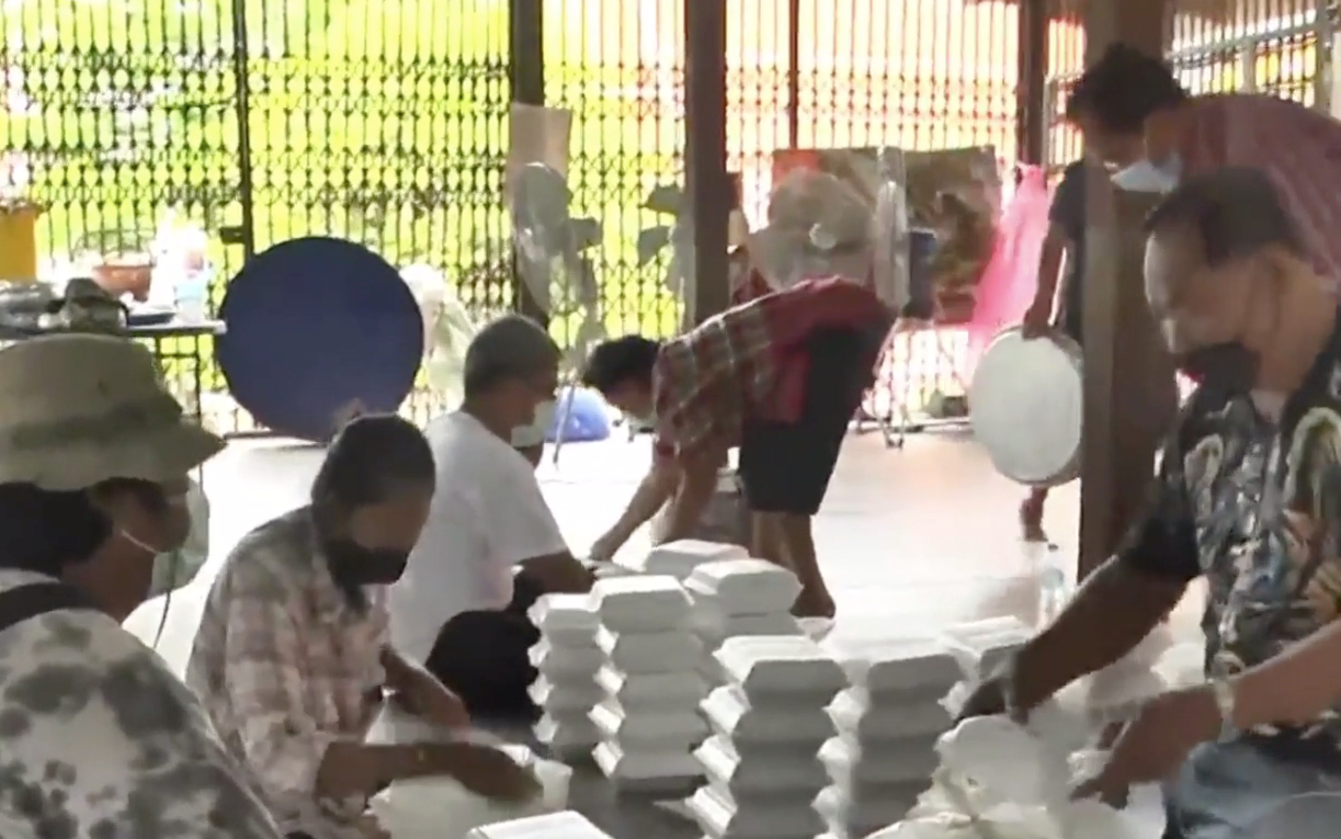 อยุธยา 25 ก.ค.- ที่โรงครัวศาลาการเปรียญวัดท่าตอ จ.อยุธยา เจ้าอาวาสนำทีมญาติโยมช่วยกันทำอาหารส่งให้ผู้ป่วยและผู้กักตัวจากโควิด-19 วันละ 100 กล่อง วันละ 1 มื้อ เพื่อเเบ่งเบาค่าใช้จ่ายแก่ญาติโยม