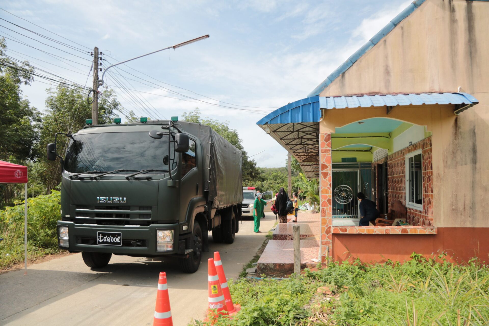 พังงา 25 ก.ค. – เจ้าหน้าที่ใช้รถทหารรับผู้ป่วยโควิดจากคลัสเตอร์ใหม่กลุ่มค้าสะตอบ้านบางคลี พบผู้ป่วยแล้วกว่า 40 ราย ยอดรวมจังหวัดทะลุ 500 ราย ผู้ว่าฯ สั่งปิดหมู่บ้านทันที