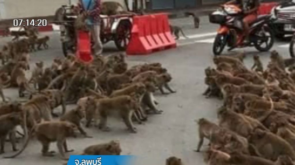 ลพบุรี 26 ก.ค.-เกิดสงครามวานร กลางเมืองลพบุรี บริเวณพระปรางค์สามยอด ชาวบ้านหวั่นเกิดอาเพศใหญ่