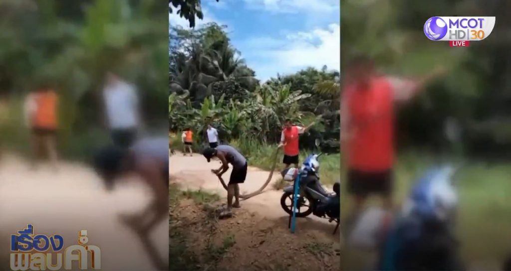 ตรัง 26 ก.ค. – ไปดูศึกงูจงอางปะทะงูหลาม วัยรุ่นเล่นที่ไปเล่นน้ำในคลองบริเวณนั้นเห็นจึงใช้ไม้ผูกเชือกทำเป็นบ่วงคล้องพยายามช่วยกันจับแยก แต่สุดท้ายงูหลามไม่รอด โดนงูจงอางกัดหางตาย