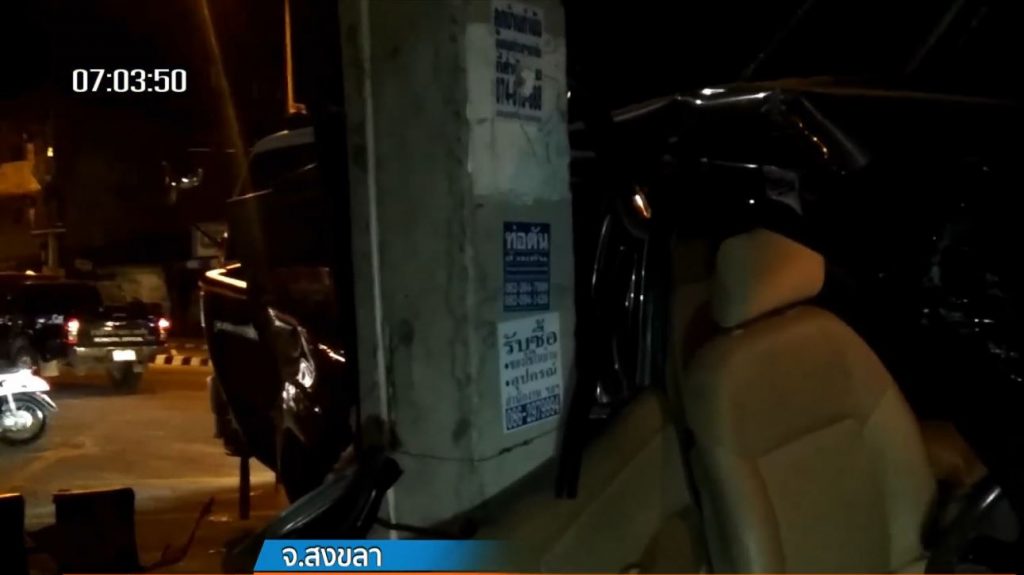 ส่วนที่สงขลา รถบรรทุกสิบล้อขนส่งสินค้าของมาเลเซีย ไถลพุ่งชนรถจักรยานยนต์ 2 คัน กระบะ 1 คัน และรถเก๋งอีก 1 คัน พังยับ เจ็บสาหัส 1 คน คาดคนขับจอดรถแล้วดึงเบรกมือไม่สุด