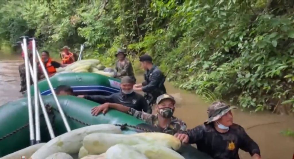 นายอิทธิพล ไทยกลม หัวหน้าอุทยานอุทยานฯ แก่งกระจาน เผยว่า น้ำได้หลากเข้าท่วมถนนเข้าหมู่บ้านโป่งลึก-บางกลอย จึงร่วมกับทหารหน่วยเฉพาะกิจทัพพระยาเสือและเจ้าหน้าที่กองร้อยตำรวจตระเวนชายแดนที่ 144 นำเสบียงอาหารที่ได้รับมอบจากภาคประชาสังคม จ.เพชรบุรี ไปมอบให้ราษฎร เช่น ข้าวสาร ปลาแห้ง น้ำตาล นม พืชผักและเวชภัณฑ์ต่างๆ ซึ่งในการลำเลียงขนส่งเสบียงอาหารต้องใช้ทั้งรถยนต์ สลับนั่งเรือยาง และนำขึ้นรถยนต์ลำเลียงอีกครั้ง จึงจะไปถึงหมู่บ้านโป่งลึก-บางกลอย ถนนหลายช่วงมีน้ำท่วมขัง ระดับสูงที่สุดประมาณ 1.50 เมตร