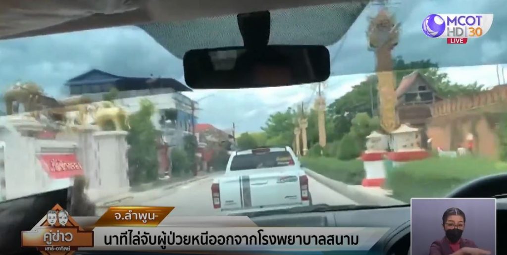 ภาพนาทีเจ้าหน้าที่ขับรถไล่ติดตามนายอนุชา อายุ 26 ปี ซึ่งเป็นผู้ป่วยติดเชื้อโควิด-19 และเข้ารักษาที่โรงพยาบาลสนาม สาขาเวียงยอง จ.ลำพูน เมื่อวันที่ 24 กรกฎาคมที่ผ่านมา ซึ่งขับกรถกระบะหลบหนีออกจากโรงพยาบาลสนามเมื่อช่วงเช้ามืดวานนี้ (31 ก.ค.) โดยตำรวจ สภ.เมืองลำพูน เจ้าหน้าที่สาธารณสุขจังหวัดลำพูน และเจ้าหน้าที่กู้ชีพกู้ภัยจังหวัด ระดมกำลังเร่งติดตามตัว