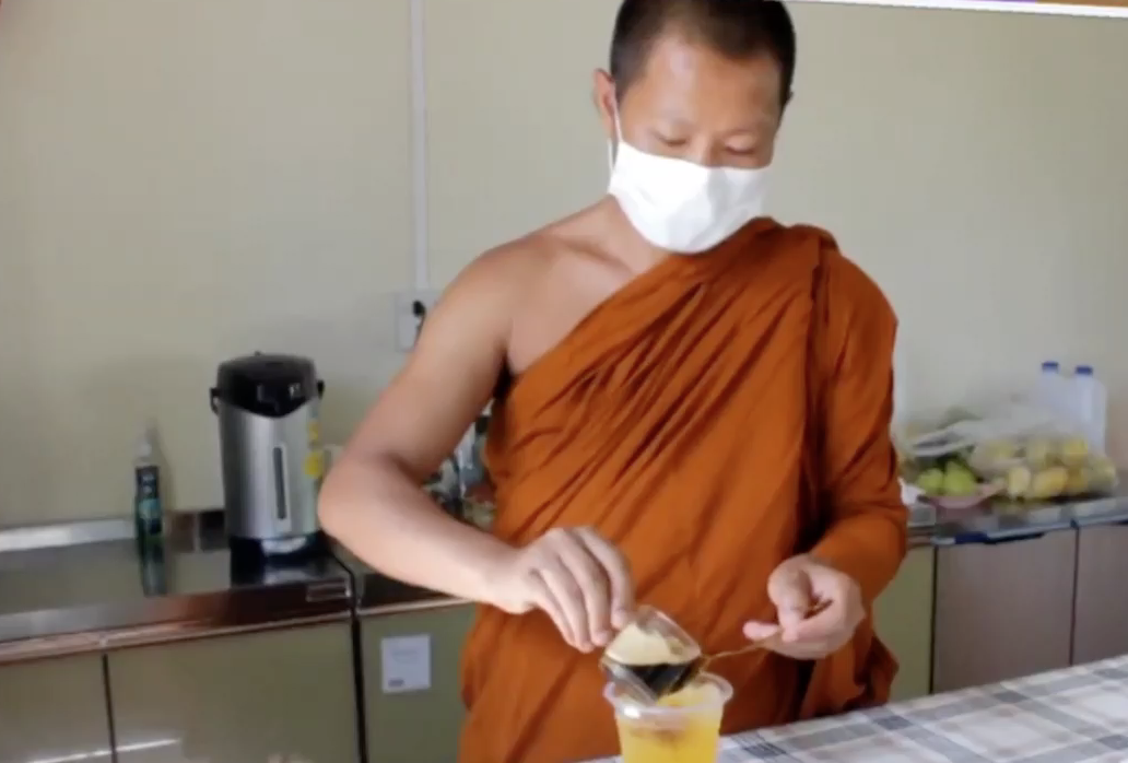 นอกจากกาแฟแล้ว ในโรงทานน้ำยังมีน้ำชา และน้ำสมุนไพรต่างๆ ซึ่งญาติโยมสามารถเข้ารับได้ฟรี จากทางโรงทานได้ทุกวัน.-สำนักข่าวไทย