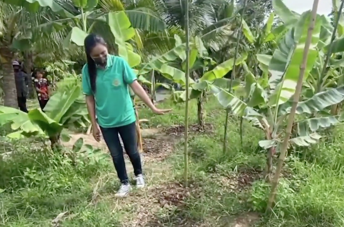 จากนั้นพาพนักงานสอบสวนไปที่ไร่พร้อมชุดสืบสวน ไปที่สวนเป็นริมถนนเข้าไปประมาณ 3 เมตร ก็จะพบต้นกล้วยน้ำว้าไอศกรีมต้นใหญ่ ที่ซื้อมาในราคา 150,000 บาท และพบหลุมข้างที่ต้นกล้วยหายไปสูงประมาณ 70 ซม. แต่ต้นนี้ยังไม่ออกราก คนขุดไปไม่น่าจะไปปลูกต่อได้ ส่วนต้นที่ 2 เป็นต้นกล้วยพันธุ์ฟลอริดา สูงประมาณ 1.20 ม. ต้นที่ 3 เป็นต้นกล้วยพันธุ์เรดฮาวาย สูงประมาณ 1.50 ม. ต้นที่ 4 เป็นต้นกล้วยพันธุ์เสือพรานด่างแม่ลูก สูงประมาณ 1.60 ม. ทั้ง 3 ต้นที่เหลือนี้มีรากมีหน่อแล้วสามารถนำไปปลูกและขายได้