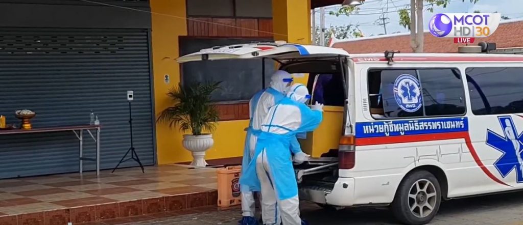 เมื่อรถบรรทุกศพจากมูลนิธิเคลื่อนศพมาถึงจะนำร่างผู้เสียชีวิต ซึ่งปิดซิลอย่างดีบรรจุในโลง ยกขึ้นเตาเผาทันที ขณะเดียวกันผู้แทนญาติเพียง 1 คน จะจุดธูปแจ้งดวงวิญญาณผู้เสียชีวิต เริ่มการเผาศพ พร้อมทอดผ้าไตรบังสุกุล ซึ่งทางวัดจัดให้อยู่ภายนอกอาคาร โดยคณะสงฆ์ 4 รูป ซึ่งสวมใส่ชุด PPE จะทอดผ้าบังสุกุล และให้พร ญาติกรวดน้ำอุทิศส่วนกุศลให้ผู้เสียชีวิต เป็นอันเสร็จพิธี จากนั้นพระสงฆ์จะฉีดพ่นยาฆ่าเชื้อโดยรอบภายในตัวอาคาร.-สำนักข่าวไทย