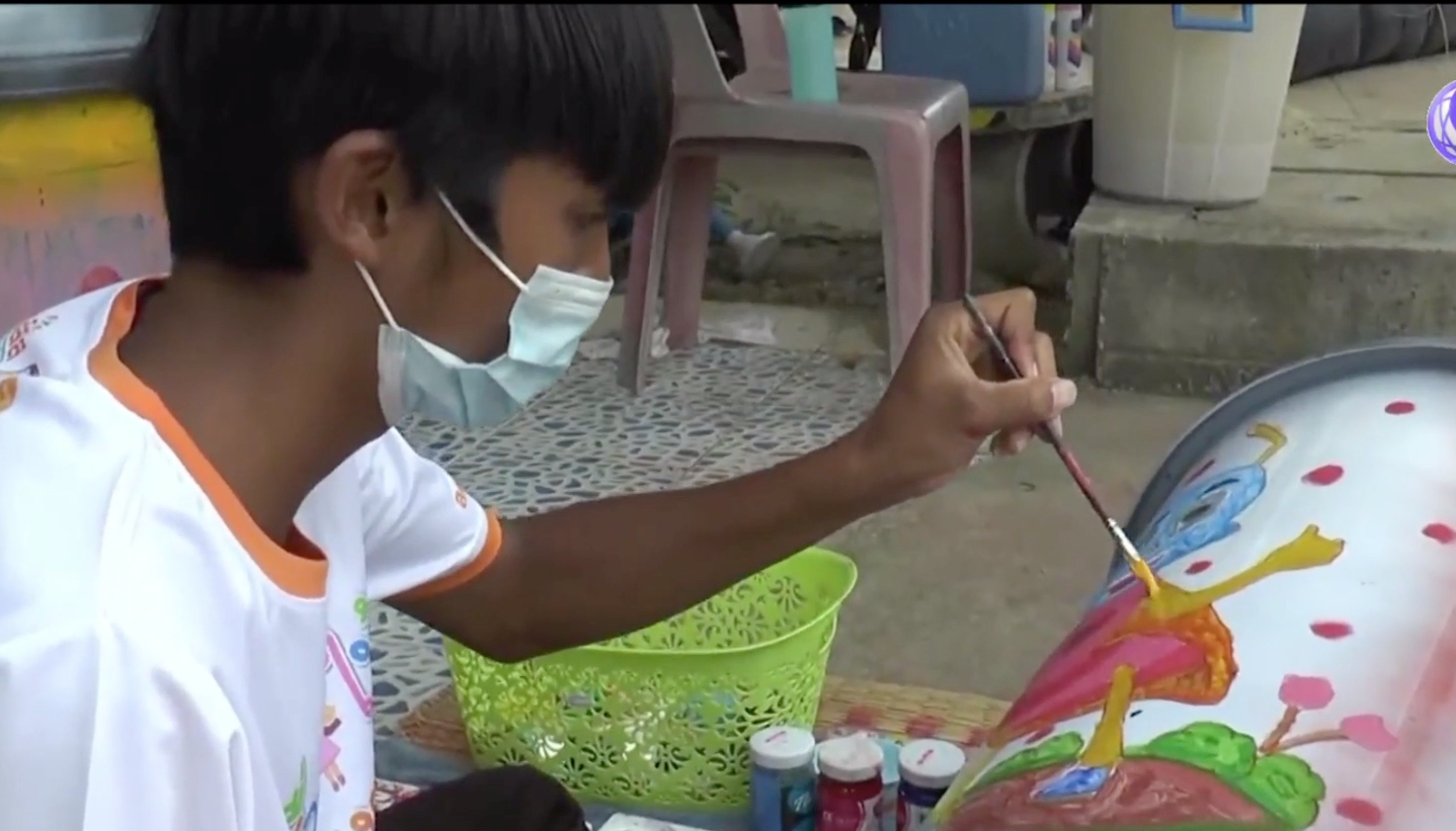 นายเจตนิพัทธ์ มุกดา หรือ น้องโก้ อายุ 17 ปี ชาวบ้านส่วย ตำบลในเมือง อำเภอพิมาย จังหวัดนครราชสีมา ใช้เวลาว่างช่วงโควิดระบาด อยู่บ้านไม่ได้ออกไปไหน นำความรู้ความสามารถที่ตนเองมีอยู่ วาดรูปการ์ตูนลงบนถังน้ำพลาสติกสีดำเพื่อนำไปแจกจ่ายในชุมชน