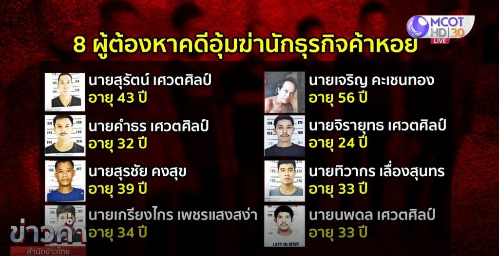 สุราษฎร์ธานี ส.ค. – ตำรวจสุราษฎร์ธานีนำตัว 8 ผู้ต้องหาอุ้มฆ่านักธุรกิจค้าหอยคนดัง ฝากขังศาลจังหวัดไชยา