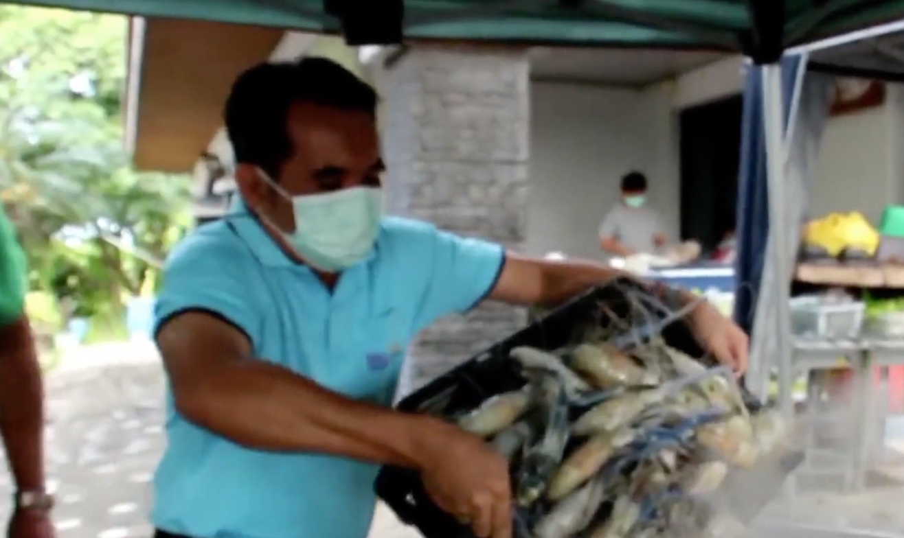 นายประกอบ ทรัพย์ยอดแก้ว นายกสมาคมผู้เพาะเลี้ยงสัตว์น้ำไทย และเจ้าของบ่อกุ้งประกอบฟาร์ม ต.ดอนใหญ่ อ.บางแพ จ.ราชบุรี พร้อมครอบครัว ได้นำกุ้งจากบ่อขนาด 8-10 ตัว/กิโลกรัม มาทำเมนูกุ้งต้มพร้อมน้ำจิ้มรสเด็ด ปรุงสดใหม่ไปมอบแก่บุคลากรด่านหน้าในพื้นที่จังหวัดราชบุรีหลายแห่ง ซึ่งวันนี้เป็นวันที่ 2 แล้ว หลังจากเมื่อวานนี้ได้นำไปมอบให้กับโรงพยาบาลต่างๆ 400 กิโลกรัม รวม 2 วัน 1,000 กิโลกรัม มูลค่ารวมเกือบ 500,000 บาท ซึ่งกุ้งก้ามกรามที่นำมาแจกนี้เป็นกุ้งจากฟาร์มเกรดพรีเมียมที่ได้มาตรฐานเตรียมนำส่งประเทศจีน แต่เกิดปัญหาสถานการณ์การแพร่ระบาดโควิด -19 ส่งผลให้กุ้งตกค้างจำนวนมากไม่สามารถส่งกุ้งออกได้