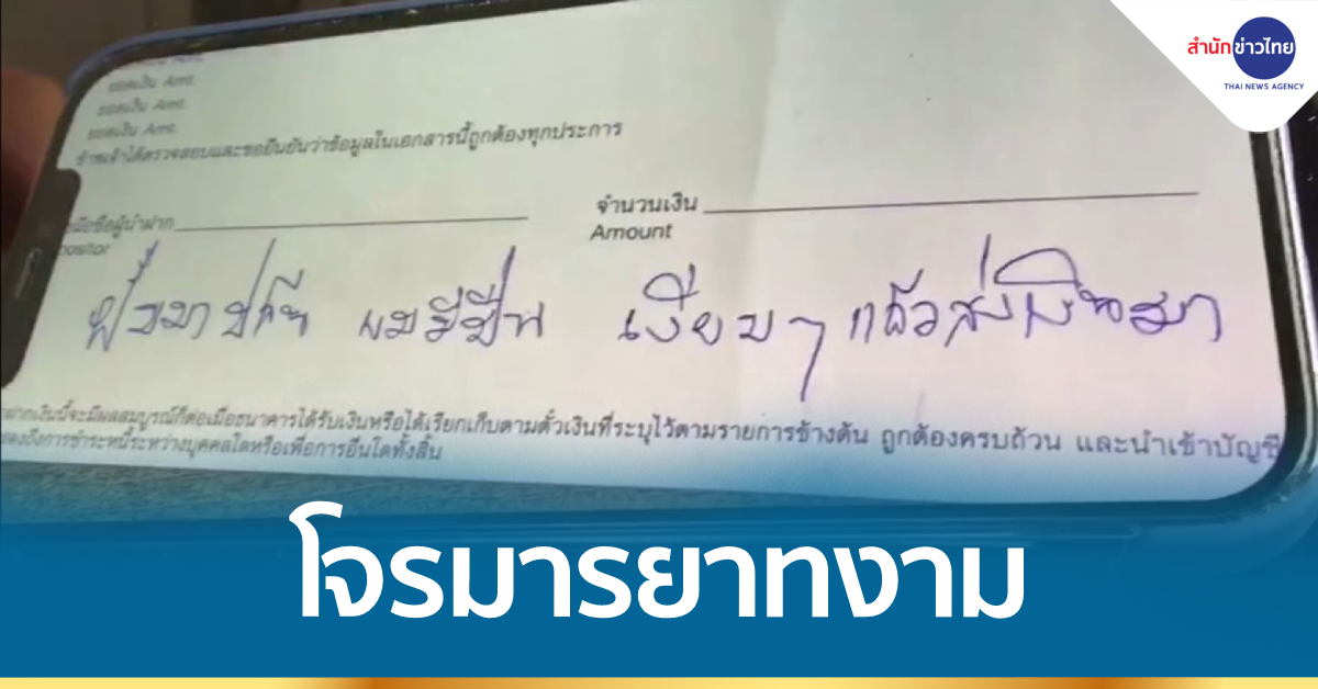 เชียงใหม่ 5 ส.ค.-รวบทันควันหลังก่อเหตุ 3 ชม. คนร้ายบุกเดี่ยวชิงเงินธนาคารไทยพาณิชย์ ในเมืองเชียงใหม่ เขียนข้อความในกระดาษ “ผมมาปล้น ผมมีปืน เงียบๆแล้วส่งเงินมา” ชิงเงินไปเกือบ 20,000 บาท