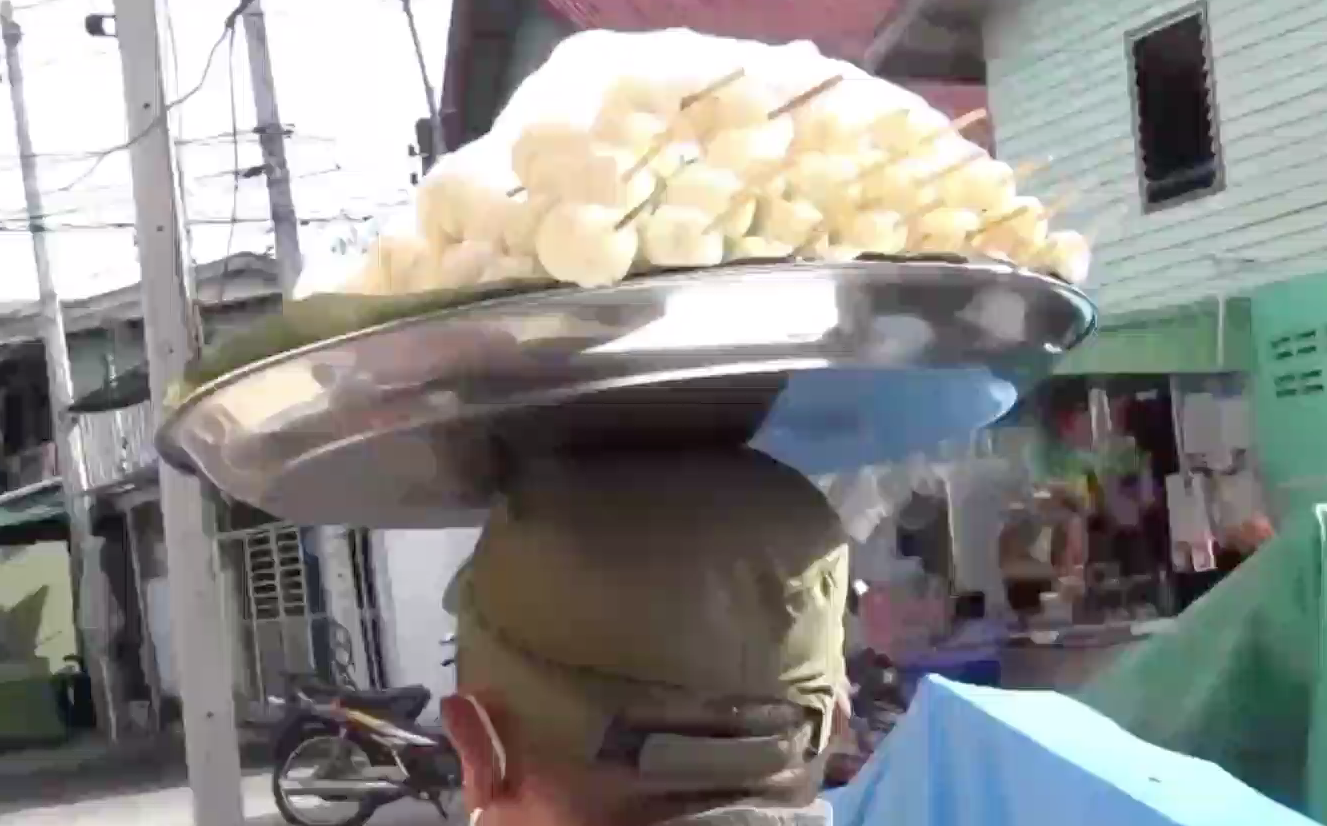 สงขลา 6 ส.ค.- สุดยอดพ่อค้าขายมังคุดดิบคัดเสียบไม้ ทูนถาดไว้บนหัวขี่จักรยานยนต์ตระเวนขายรอบเมืองสงขลาอย่างชำนาญ โดยไม่ต้องใช้มือจับและไม่เคยพลาดทำถาดหล่น