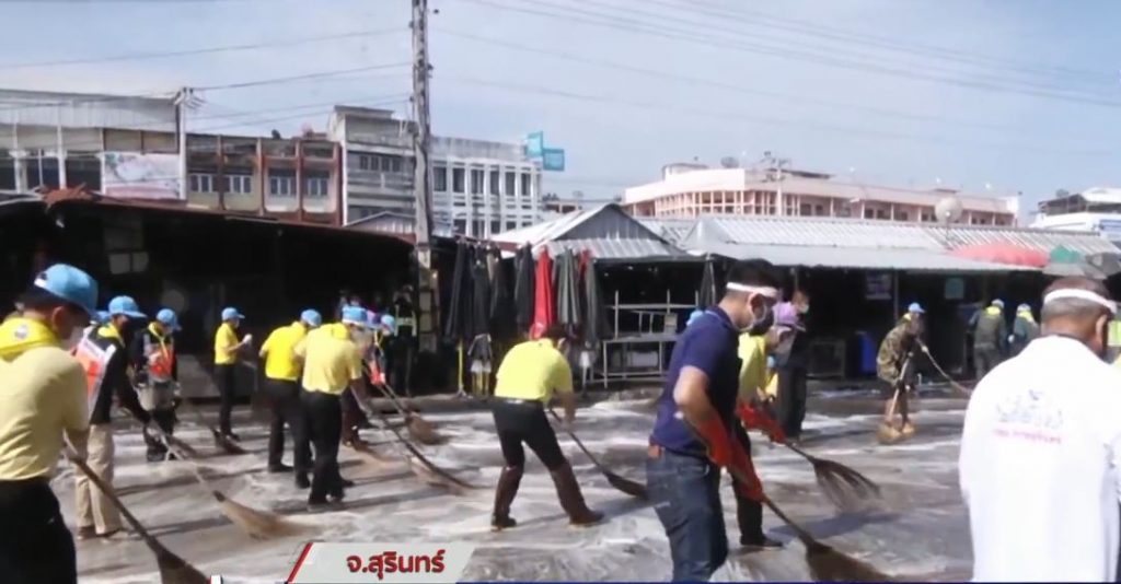 ส่วนราชการในจังหวัดสุรินทร์ และจิตอาสา บูรณาการปฏิบัติการล้างตลาดสดเทศบาลเมืองสุรินทร์ครั้งใหญ่ หลังพบแม่ค้าติดเชื้อโควิค -19 โดยเจ้าหน้าที่ได้ดำเนินการตรวจคัดกรองเชิงรุก พ่อค้าแม่ค้าของตลาดทั้ง 4 ประกอบด้วย ตลาดสดเทศบาล ตลาดน้อยรื่นรมย์ ตลาดไนท์พลาซ่า และตลาดอนุสาวรีย์พระยาสุรินทร์ภักดีศรีณรงค์จางวาง ซึ่งอยู่ในความรับผิดชอบของเทศบาลเมืองสุรินทร์ หากพบว่ามีผู้ป่วยติดเชื้อ จะนำเข้าสู่ขบวนการรักษา หรือถ้าไม่ติดโควิด-19 ก็จะให้คำแนะนำด้านสุขอนามัย ก่อนกลับไปค้าขายตามปกติ