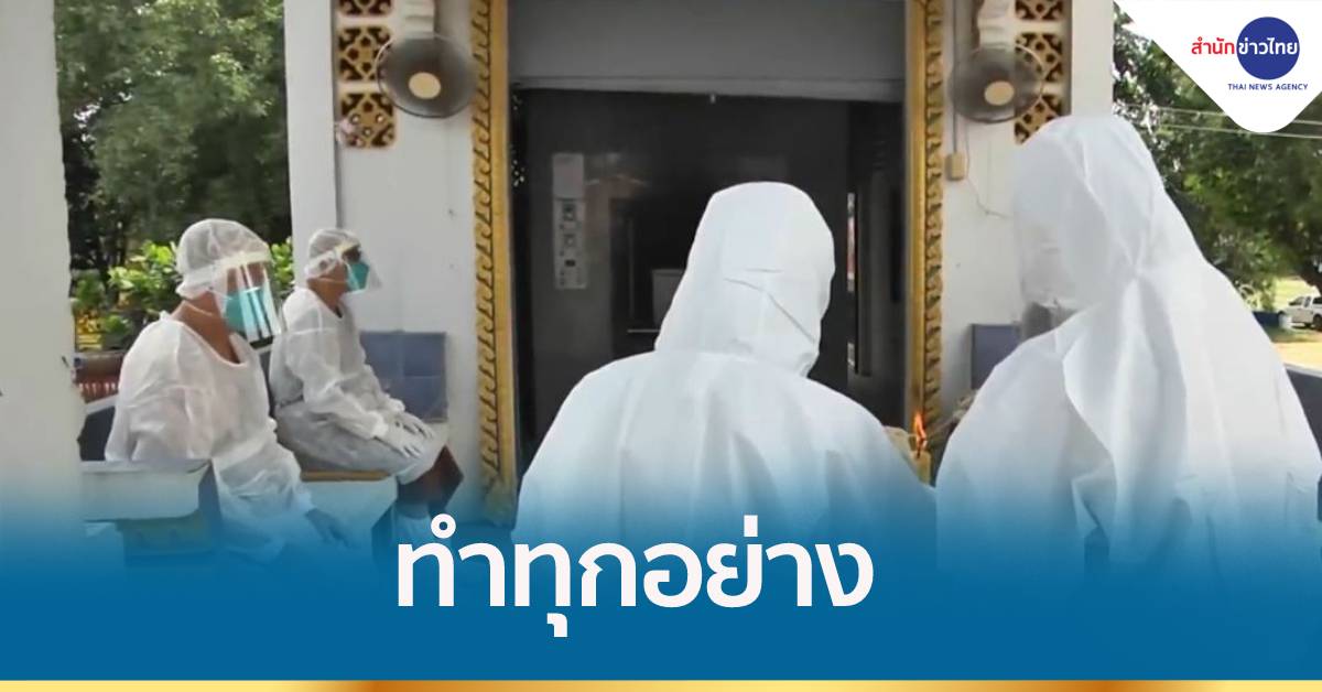 พระครูสังฆรักษ์ สายัณห์ อายุ 52 ปี เจ้าอาวาสวัด พร้อมด้วยพระลูกวัด สวมใส่ชุดพีพีอี เตรียมเผาศพโควิด ส่วนสาเหตุมาจาก สัปเหร่อประจำวัดเป็นผู้เสี่ยงสูง ต้องกักตัว ดังนั้นพระจึงต้องมาทำหน้าที่ในการเผาเอง ทำทุกอย่างตั้งแต่จัดเตรียมสถานที่ ยกโลงขึ้นเมรุ สวดบังสุกุล เผาศพ เก็บกระดูก ถึงเวลาที่ญาติโยมเดือดร้อนอะไรที่พระทำได้ต้องทำช่วยเหลือ ที่วัดจะรับเผาเพียงวันละ 1 ศพเท่านั้น เพราะต้องถนอมเตาเผาศพเอาไว้ เพื่อไว้มาได้ทุกเวลา จะมีพระลูกวัดที่มีหน้าที่ในการับดำเนินการเผาศพ