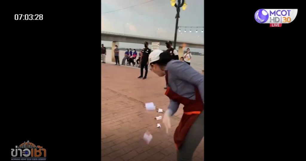 มุกดาหาร 9 ส.ค. – แม่ค้าปะทะคารมกับเจ้าหน้าที่ ขอเปิดร้านขายริมถนนคนเดินจุดชมวิวสะพานมิตรภาพไทย-ลาว แห่งที่ 2 หลังถูกเทศบาลตำบลบางทรายใหญ่สั่งปิดร้าน ป้องกันโควิด พร้อมกับยึดอุปกรณ์ทำมาหากิน