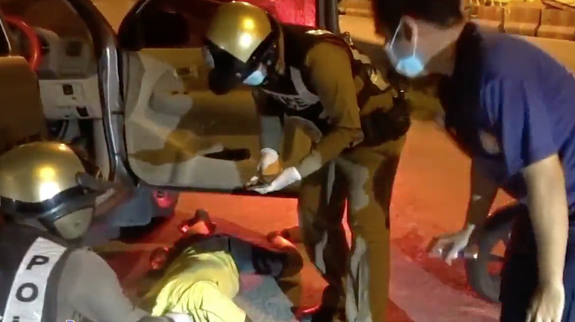 ทันทีที่เจ้าหน้าที่มาถึง พยายามตะโกนเรียกอยู่ 10 นาที เพราะคิดว่าอาจเป็นผู้ป่วย กระทั่งชายคนดังกล่าวรู้สึกตัว เปิดประตูออกมาพบว่าเป็นชายอายุ 50-55 ปี อยู่ในอาการมึนเมาหนัก เพราะขณะพยายามก้าวเท้าออกมาจากรถยังไม่ไหว ถึงกับทรุดร่วงลงไปหน้ากระแทกพื้น ก่อนหลับสนิทไปอีก