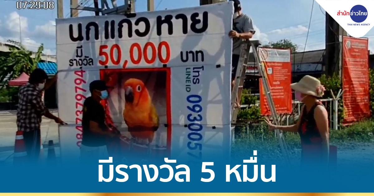ปทุมธานี 11 ส.ค. – หญิงวัย 64 ปี ตระเวนติดป้ายขนาดใหญ่ริมถนซ่อมสร้าง ต.บ้านใหม่ อ.เมือง จ.ปทุมธานี ตามหานกแก้ว “น้องโชค” หายออกจากหมู่บ้านกฤษณา-ติวานนท์ ซอยพระแม่การุณย์ 27 มีรางวัล 50,000 บาท สำหรับผู้พบเห็นแล้วนำมาคืน ยอมรับเปรียบเสมือนลูกและมีความผูกพันกันมาก