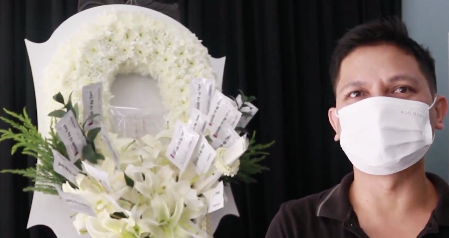 สุพรรณบุรี 11 ส.ค.- ไอเดียเก๋! ร้านพวงหรีดแห่งหนึ่ง จ.สุพรรณบุรี ทำพวงหรีดที่ตรวจเชื้อโควิด-19 สร้างรายได้