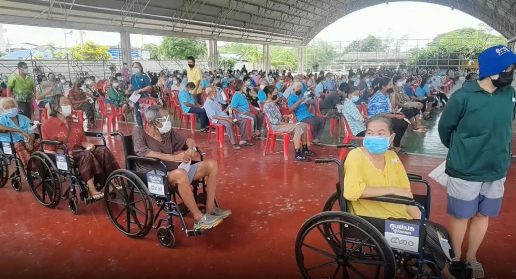 ส่วนที่ศูนย์บริการฉีดวัคซีนโควิด-19 อ.เมือง จังหวัดราชบุรี บรรยากาศเป็นไปอย่างคึกคัก มีบรรดาลูกๆ ต่างพาคุณพ่อ-คุณแม่ มารับบริการฉีดวัคซีนกันจำนวนมาก โดยมีการให้บริการผู้สูงอายุ 60 ปีขึ้นไป หรือผู้ป่วย 7 กลุ่มโรคเรื้อรัง และหญิงตั้งครรภ์ที่มีอายุครรภ์ ตั้งแต่ 12 สัปดาห์ขึ้นไป แบบการลงทะเบียน และบริการทางผู้นำชุมชน มีการจัดกำลังทหารคอยอำนวยความสะดวกประชาชนเพื่อเข้ารับการบริการฉีดวัคซีนตั้งแต่จุดแรกรับจนส่งขึ้นรถกลับบ้าน
