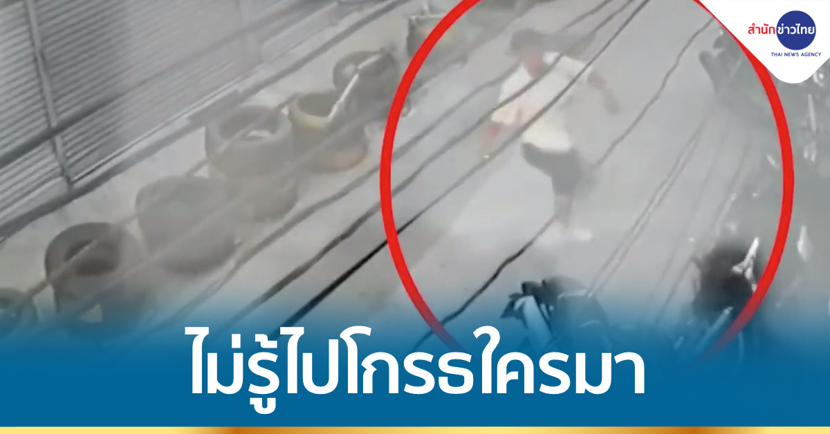 ชลบุรี 13 ส.ค.- วงจรปิดจับภาพสาวใหญ่ขี้โมโห ไล่ถีบรถจักรยานยนต์ของพนักงานบริษัทรักษาความปลอดภัยล้มระเนระนาด