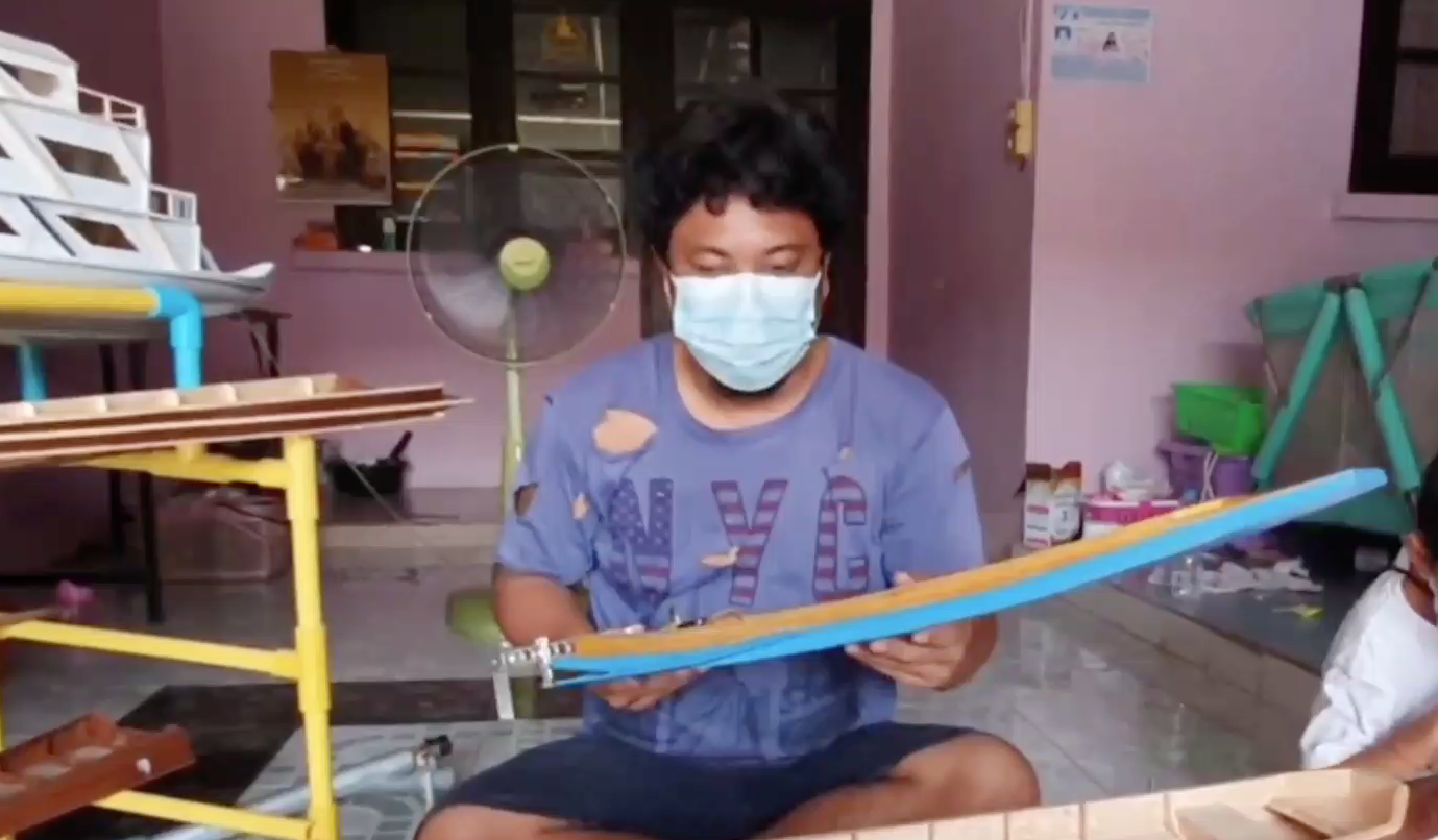 ปทุมธานี 16 ส.ค.- หนุ่มปทุมฯ ไอเดียเจ๋งใช้เวลาว่างวันหยุด ทำเรือไม้จิ๋วติดเครื่องยนต์ขาย เพิ่มรายได้ให้กับครอบครัว