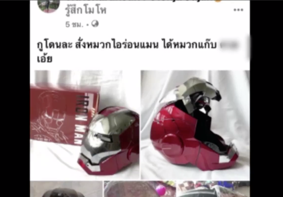 ชลบุรี 18 ส.ค.- หนุ่มโพสต์เตือนภัย สั่งหมวกกันน็อก Iron Man ออนไลน์ ได้สินค้าไม่ตรงปก ขนาดเก็บเงินปลายทางยังสูญเงินนับพัน