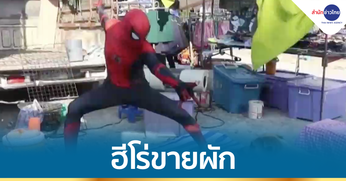 สุพรรณบุรี 19 ส.ค.- ที่ตลาดนัดแห่งหนึ่ง อ.เมืองสุพรรณบุรี พ่อค้าใส่ชุดซูเปอร์ฮีโร่เดินขายผักผลไม้อยู่ในตลาด โดยเล่าว่าแต่ก่อนมีอาชีพแต่งชุดฮีโร่ต่างๆ ออกแสดงตามอีเวนต์ เจอพิษโควิดทำให้ตกงาน จึงหันมาขายผักผลไม้ตามตลาดนัด สร้างรอยยิ้มและสีสันให้กับคนที่มาจับจ่ายซื้อของ