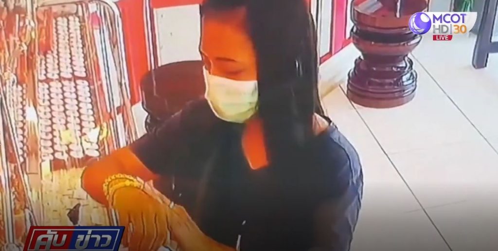 ระยอง 19 ส.ค. – ภาพวงจรปิดร้านทองพลอยไพลิน ในตลาดเทศบาลตำบลเมืองแกลง จังหวัดระยอง จับภาพคนร้ายสาววัย 30 ปีเศษ เข้าไปทำทีขอซื้อสร้อยข้อมือทองคำหนัก 2 บาท และ 3 บาท ก่อนจะเชิดทองวิ่งหลบหนีออกจากร้านขึ้นรถเก๋งขับหลบหนี