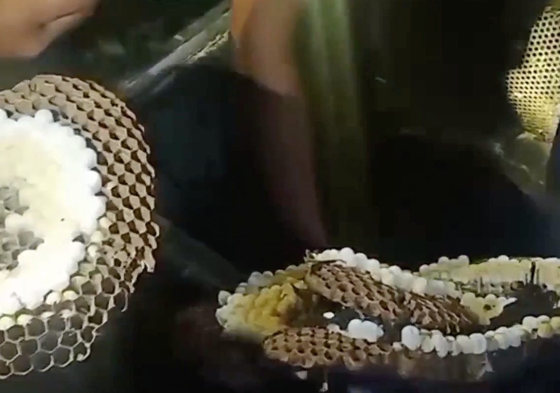 จากนั้นนำรังต่อซึ่งมีทั้งหมด 4 ชั้น ออกมาซึ่งยังมีตัวอ่อนที่ยังไม่ตายจำนวนหลายร้อยตัว คนที่ชอบของโด๊ป ยืนรอท่าไม่รอช้ารีบเข้าไปคว้าตัวอ่อนต่อจากรังที่ยังกระดุกกระดิกมาใส่ปากเคี้ยวแบบเปิบพิสดารหน้าตาเฉย พร้อมบรรยายสรรพคุณเสร็จสรรพ เล่นเอาหลายคนขุนลุก ส่วนคนที่ไม่ชอบเรื่องโด๊ปแต่ชอบตัวเลขก็ไม่พลาด หันไปดูเลขที่บ้าน เลขที่ 20 หมู่ 1 ของคุณสุวัฒน์ เผื่อเอาไว้ลุ้นวันที่ 1 กันยายน หวังว่าต่อจะบันดาลให้ต่อเงินต่อทองแก้จนสักครั้ง