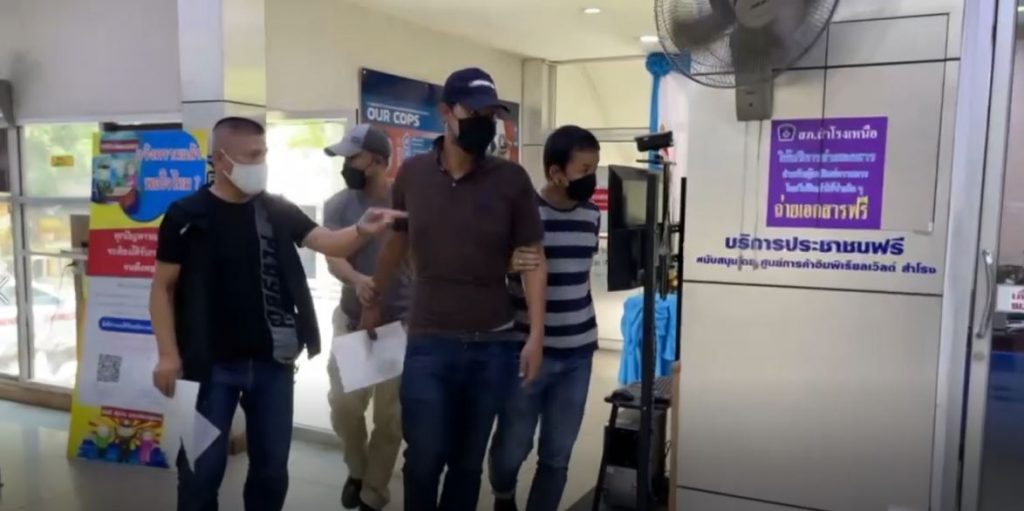 ล่าสุดสิบโทชธายุธ ผู้ก่อเหตุ ติดต่อไปยังคนสนิท ซึ่งเป็นนักการเมืองที่เทศบาลตำบลด่านสำโรง เพื่อขอเข้ามอบตัวกับตำรวจ เมื่อสิบโทชธายุธเดินทางมาที่ สภ.สำโรงเหนือ ด้วยตนเอง โดยมี พ.ต.อ.อาทิตย์ ซิ้มเจริญ ผกก.สภ.สำโรงเหนือ มารับตัวนำไปที่ห้องสืบสวนอย่างรวดเร็ว โดยไม่อนุญาตให้สื่อมวลชนเข้าไปบันทึกภาพ ขณะที่สิบโทชธายุธมีสีหน้าเรียบเฉย และยังไม่ได้ให้รายละเอียดเกี่ยวกับเหตุการณที่เกิดขึ้น ส่วนอาการผู้