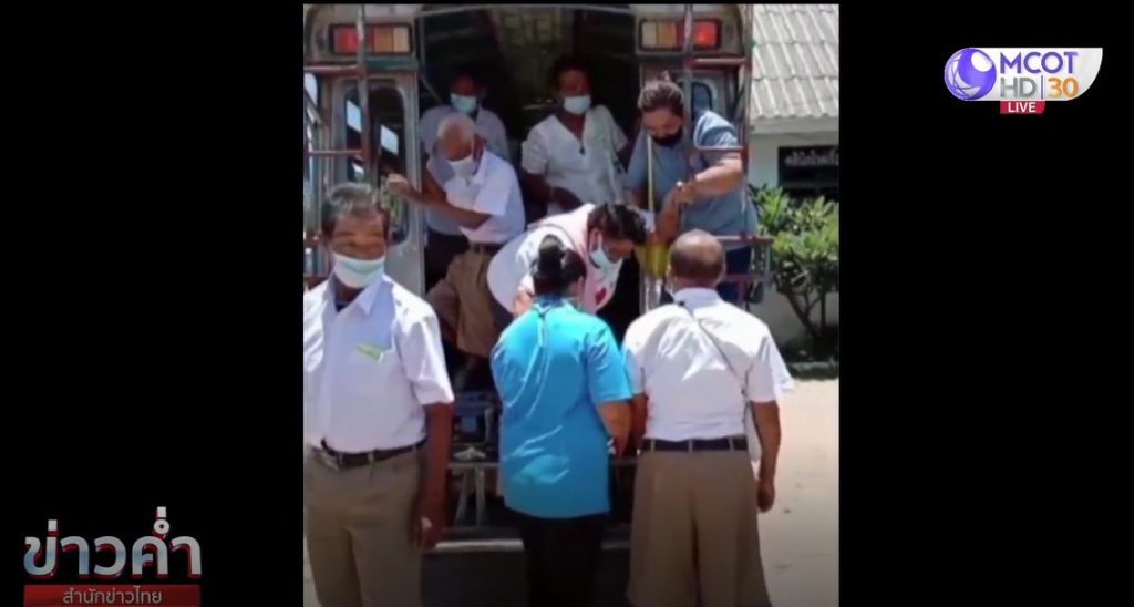 คุณตาคุณยายกว่า 50 คน ใส่ชุดนักเรียนไปรับการฉีดวัคซีนที่หน่วยบริการ รพ.เขาสวนกวาง จ.ขอนแก่น อย่างเป็นระเบียบเรียบร้อย คุณตาคุณยายกลุ่มนี้เป็นผู้สูงอายุในพื้นที่ ต.นางิ้ว อ.เขาสวนกวาง และเป็นนักเรียนโรงเรียนผู้สูงอายุประจำตำบล วันนี้เลยพร้อมใจกันใส่ชุดนักเรียนมาแบบเต็มยศ มีรถโรงเรียนมาส่งถึงหน้าโรงพยาบาล สร้างรอยยิ้มให้กับผู้พบเห็น โดยเฉพาะคุณหมอคุณพยาบาล ทำให้บรรยากาศของการฉีดวัคซีนวันนี้เป็นไปด้วยความอบอุ่นและเป็นระเบียบเรียบร้อย ฉีดวัคซีนเสร็จนั่งพักสังเกตอาการ 30 นาที พบว่าส่วนใหญ่ไม่มีผลข้างเคียง จะมีเพียงบางคนที่มีอาการปวดต้นแขนเท่านั้น.-สำนักข่าวไทย