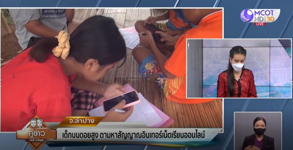 กลุ่มเด็กนักเรียนบนพื้นที่สูง พื้นที่บ้านใหม่สามัคคี (ห้วยวาด) หมู่ 7 ตำบลทุ่งผึ้ง อำเภอแจ้ห่ม จังหวัดลำปาง พากันออกเดินหาสัญญาณอินเทอร์เน็ตและสัญญาณโทรศัพท์มือถือ เพื่อใช้เรียนหนังสือผ่านออนไลน์ โดยพบว่าบริเวณกระท่อมบนสันเขาที่ชาวบ้านสร้างไว้เฝ้าไร่ เฝ้าสวน เด็กๆ ต่างพากันมาจับกลุ่มเรียนหนังสือผ่านระบบออนไลน์ ในช่วงการแพร่ระบาดของโควิด-19 เนื่องจากพื้นที่อื่นๆ ของหมู่บ้านไม่มีสัญญาณโทรศัพท์และอินเทอร์เน็ต มีเพียงจุดนี้จุดเดียวที่พอมีสัญญาณ เด็กๆ จึงพากันมานั่งเรียนผ่านโทรศัพท์มือ