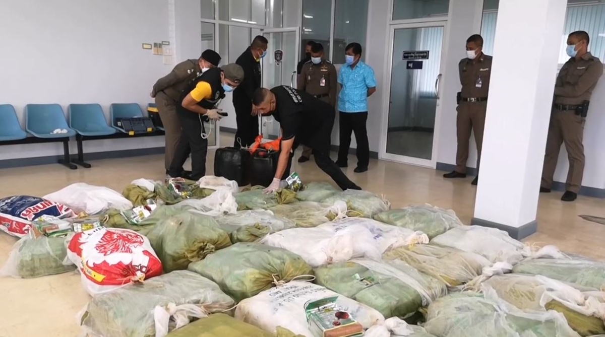 ตำรวจ สภ.กันตัง ช่วยกันขนย้ายยาไอซ์ จำนวน 32 กระสอบ น้ำหนักประมาณ 650 กิโลกรัม ออกจากที่เก็บภายในห้องควบคุมตัวผู้ต้องหา ชั้น 1 เพื่อนำส่งกองพิสูจน์หลักฐานตรัง และเตรียมส่งต่อไปตรวจพิสูจน์และหาหลักฐานเพิ่มเติม ที่ศูนย์พิสูจน์หลักฐาน 9 อ.หาดใหญ่ จ.สงขลา โดยยาไอซ์ดังกล่าว เจ้าหน้าที่ตรวจยึดมาได้ เมื่อวันที่ 20 สิงหาคมที่ผ่านมา ขณะผู้ค้าผูกทุ่นไว้ที่จุดนัดส่งของกลางทะเลอันดามัน บริเวณพื้นที่เกาะรอก จ.ตรัง โดยมูลค่าในประเทศประมาณ 200 ล้านบาท ปลายทางประเทศที่ 3 คือ มาเลเซีย อินโดนีเซีย และออสเตรเลีย มูลค่าประมาณ 600-1,000 ล้านบาท