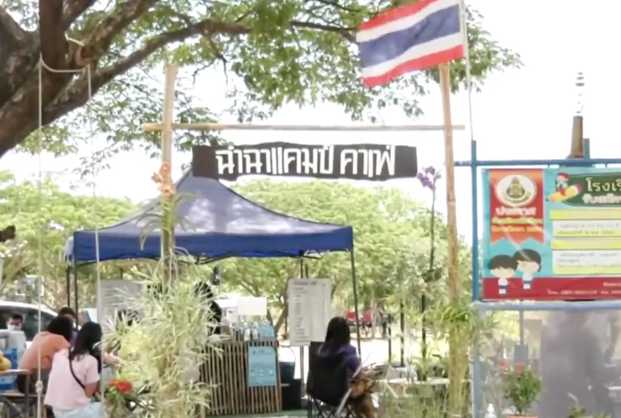 บรรยากาศสุดซิลล์ ร้านกาแฟ chamcha camp cafe (ฉำฉาคาเฟ่) ที่ใช้พื้นที่ของโรงเรียนบ้านไดชุมแสง ต.บ้านบุ่ง อ.เมือง จ.พิจิตร ตามโครงการโรงเรียนอยู่คู่ชุมชน เสน่ห์ของร้านนี้คือ การทำกาแฟสดด้วยการใช้หม้อแรงดัน เจ้าของร้านเป็นวัยรุ่นอายุเพียง 20 ชื่อน้องลูกเกด หรือ นางสาวกัณฐรัตน์ จรลอง ได้เล่าให้ฟังว่าหลังจากจบ ม.6 ได้ไปทำงานพาร์ตไทม์ ทำให้เกิดความคิดอยากเป็นนายตัวเอง จึงตัดสินใจเรียนการทำกาแฟที่กรุงเทพ กลับมาเปิดร้านกาแฟบรรยากาศริมท้องทุ่งนา มีลมพัดเย็นสบายตลอดทั้งวัน มีต้นฉำฉาให้ร่มเงา ร้านกาแฟเปิดคู่กับร้านอาหารตามสั่งของแม่ ซึ่งจะเป็นร้านอาหารจานเดียวและร้านส้มตำอีสาน โดยขอใช้บริเวณพื้นที่ริมทางของโรงเรียนตามโครงการโรงเรียนอยู่คู่ชุมชน
