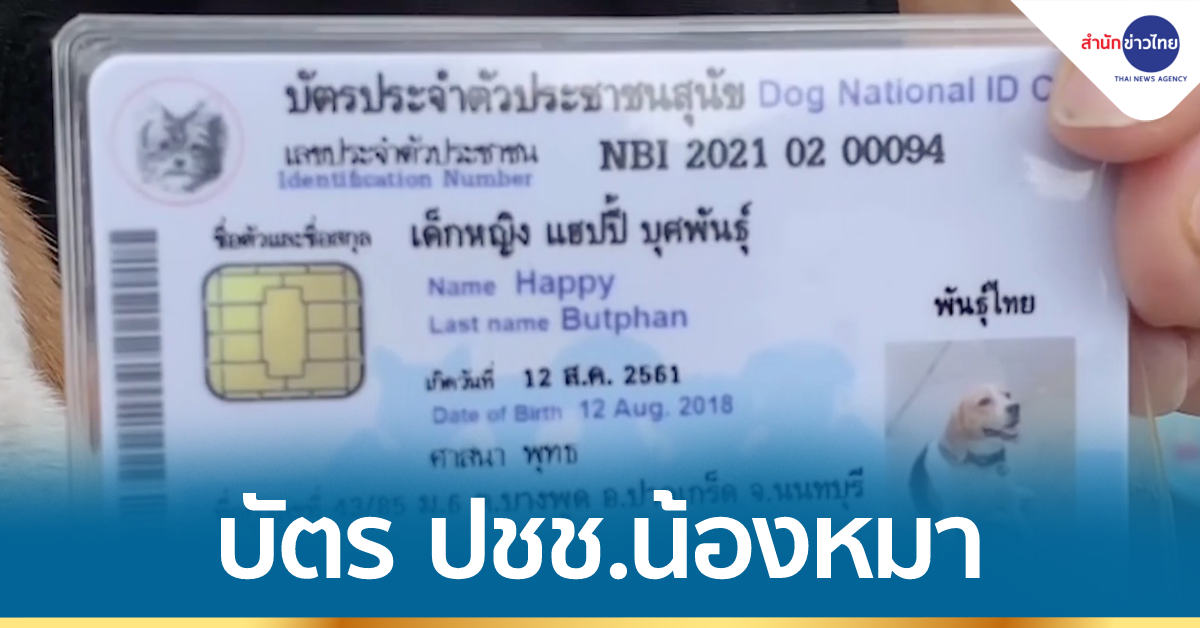 นนทบุรี 27 ส.ค.- อดีตทหารนักบุญ จัดทำบัตรประชาชนน้องหมาเนื่องในวันสุนัขโลก ซึ่งข้อมูลมีทั้งรูปถ่าย ชื่อ และนามสกุล ครบถ้วนเหมือนของคน ซึ่งจุดประสงค์เพื่อให้เจ้าของน้องหมามีความรับผิดชอบ ช่วยกันดูแลควบคุมหากน้องหมาหายไป
