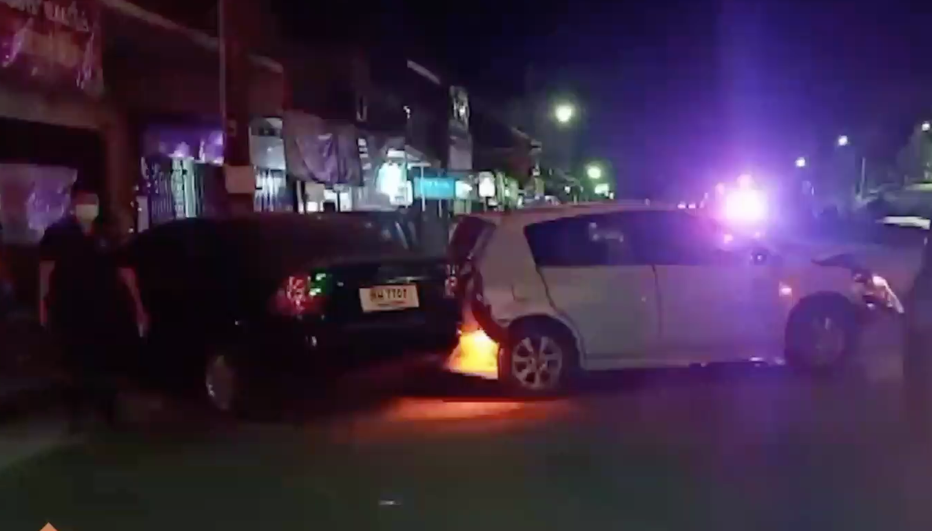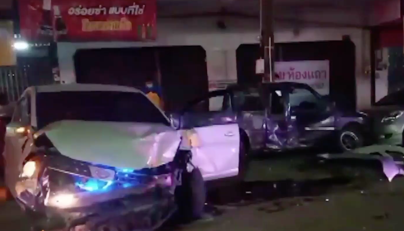 ภาพจากกล้องวงจรปิดของร้านข้าวต้มปลาริมถนนในตัว อ.บ่อทอง จ.ชลบุรี จับภาพรถเก๋งพุ่งชนรถที่จอดข้างทางอย่างแรง ทำให้คนขับรถและคนนั่งข้างได้รับบาดเจ็บ ทางตำรวจสภ.บ่อทองได้ตรวจสอบพร้อมหน่วยกู้ภัยสว่างเหตุบ้านทุ่งเหียง ที่เกิดเหตุพบรถเก๋ง สภาพด้านหน้าเสียหายยับเยิน ซึ่งเป็นคันก่อเหตุพุ่งชนรถชาวบ้านประกอบด้วย รถเก๋งสีดำ รถกระบะสีเทา รถเก๋งสีบรอนซ์ ทั้งหมดเป็นรถของชาวบ้านที่จอดริมถนนได้รับความเสียหายหนัก ตรวจสอบภายในรถเก๋งคันเกิดเหตุพบผู้บาดเจ็บ 2 รายชื่อนายเดชา อายุ 41 ปี ศีรษะแตก เป็นคนขับ อีกรายชื่อนางสาวโสภิต อายุ 29 ปี เจ็บขาทั้งสองข้าง กู้ภัยฯ ช่วยเหลือนำตัวออกมาจากตัวรถปฐมพยาบาลเบื้องต้นก่อนนำส่งโรงพยาบาลบ่อทอง