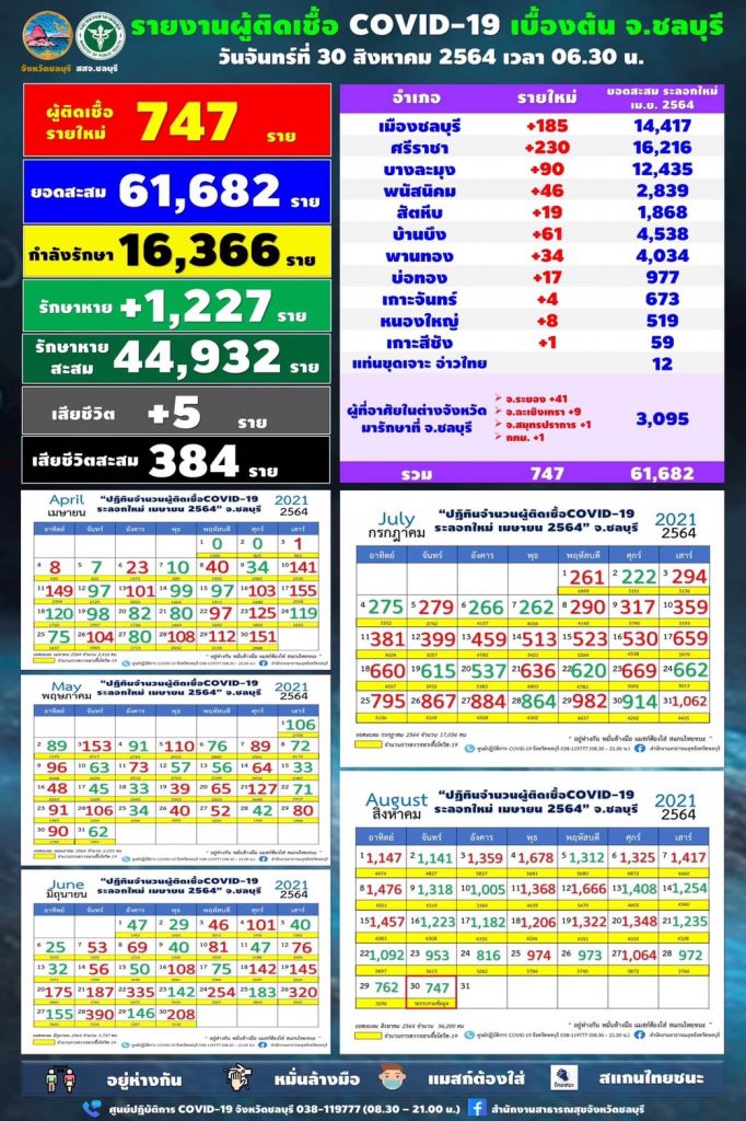 ขณะที่สถานการณ์โควิดในพื้นที่ สำนักงานสาธารณสุขจังหวัดชลบุรี รายงานพบผู้ติดเชื้อรายใหม่ 747 ราย เสียชีวิต 5 ราย จาก