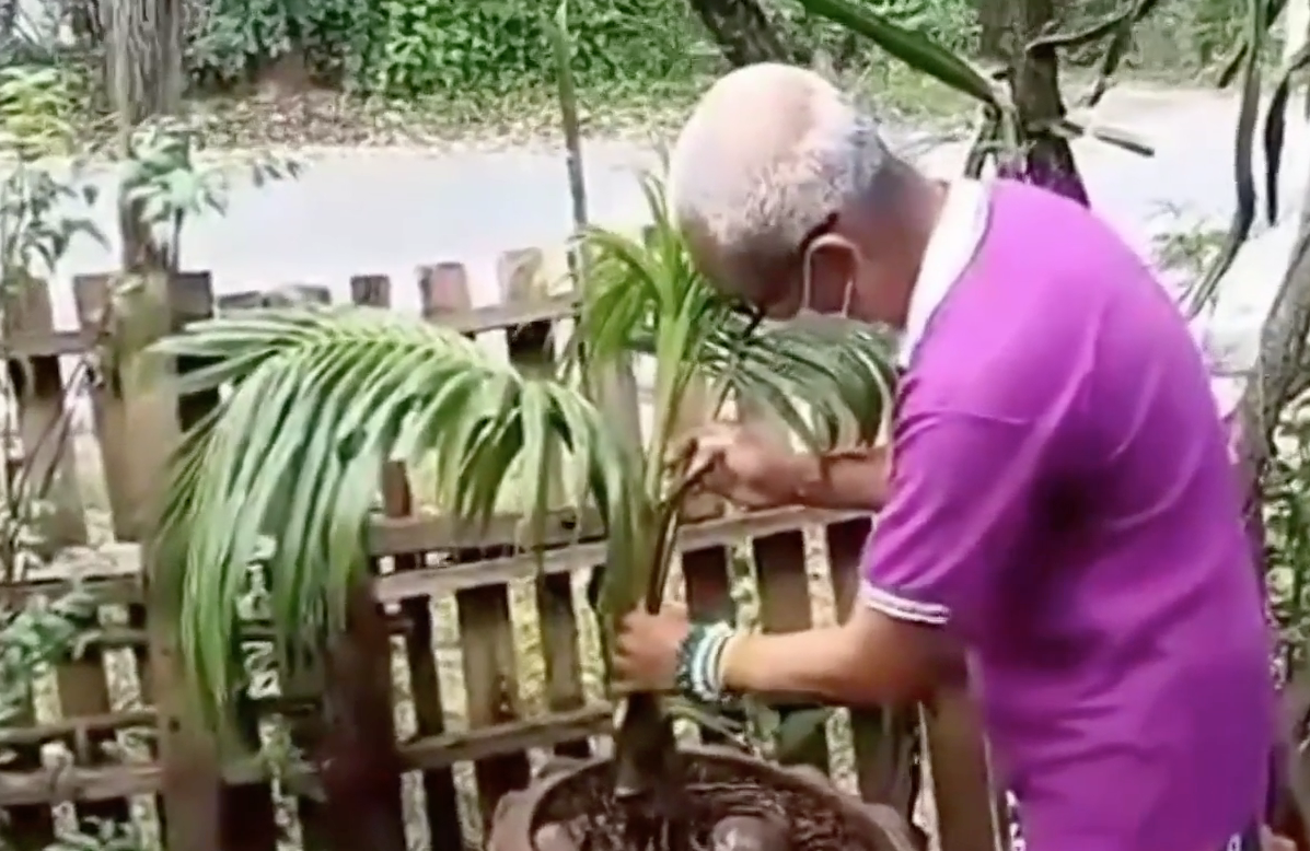 ยโสธร 27 ส.ค.- หนุ่มช่างตัดผมไม่ยอมแพ้ หลังเจอพิษโควิด-19 จนต้องปิดร้าน หันมาปลูกบอนไซมะพร้าวขาย แบบนับใบ ขายก้านใบละ 500 บาท