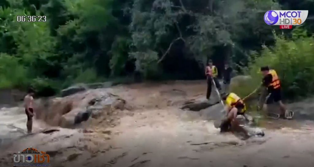 เพชรบูรณ์ 1 ก.ย. – เจ้าหน้าที่กู้ภัยช่วยเหลือ 3 นักท่องเที่ยวรอดหวุดหวิด หลังติดอยู่บนโขดหินกลางกระแสน้ำป่าหลาก ในน้ำตกวังหินหอ จ.เพชรบูรณ์ เผยตอนแรกน้ำยังใสเป็นปกติ แต่จู่ๆ มีน้ำป่าไหลหลากทะลักอย่างรวดเร็ว
