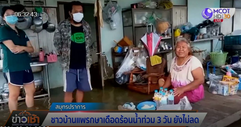 สอบถามนางทุเรียน ง่วนจร อายุ 57 ปี เจ้าของบ้าน เล่าว่า บ้านของตนสร้างมานานกว่า 60 ปี ก่อนที่ถนนจะมาถมให้สูงขึ้นเมื่อไม่กี่ปีมานี้ จึงทำให้น้ำท่วมบ่อยครั้ง แต่ทุกครั้งก็ท่วมไม่มากและน้ำจะลดระดับเร็ว ครั้งนี้น้ำท่วมหนักกว่าทุกครั้งที่ผ่านมา และท่วมนานถึง 3 วัน ทั้งที่จุดอื่นๆ เช่น นิคมฯ บางปู น้ำลดระดับลงแล้ว