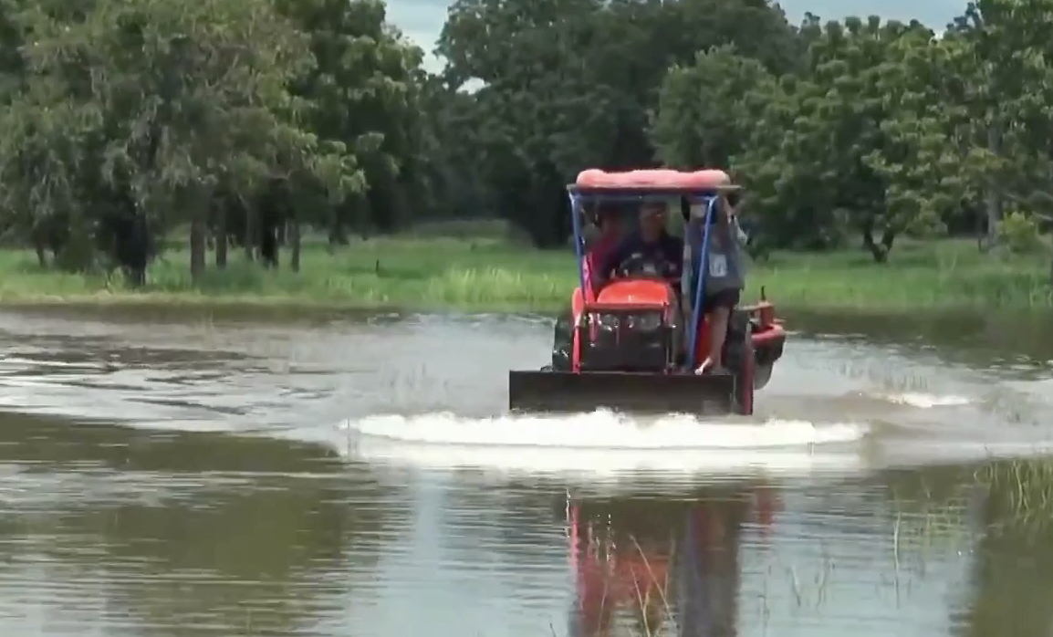 ฝนที่ตกติดต่อกันหลายวัน ทำให้มีน้ำจำนวนมากไหลลงอ่างเก็บน้ำลำเชียงไกรตอนล่าง อ.โนนไทย จ.นครราชสีมา จนปริมาณน้ำเกือบเต็มความจุ 21 ล้านลูกบาศก์เมตร ต้องเร่งระบายน้ำลงสู่พื้นที่ด้านล่าง เพื่อเตรียมรองรับปริมาณน้ำที่เพิ่มขึ้นอย่างต่อเนื่อง ทำให้มีมวลน้ำล้นตลิ่งหลากเข้าท่วมพื้นที่นาข้าวของเกษตรกรเสียหาย อย่างนาข้าวเนื้อที่ 4 ไร่ของนางดอกไม้ มาลี อายุ 72 ปี ชาวนา ต.บัลลังก์ อ.โนนไทย ถูกน้ำท่วมข้าวที่กำลังโตจนมิด มองไม่เห็นยอดต้นข้าวมานาน 3 วัน ระดับน้ำลึก 50-80 ซม. ยายดอกไม้ บอกว่าเมื่อ 2-3 ปีก่อน เจอปัญหาภัยแล้ง นาข้าวเสียหาย ผลผลิตไม่เต็มเม็ดเต็มหน่วย มาปีนี้เจอฝนตกหนักติดต่อกันหลายวัน ทำให้ปริมาณน้ำไหลเข้าท่วมข้าวนาปี รู้สึกกังวล เพราะทำนาแค่ปีละครั้ง กลัวผลผลิตเสียหาย หากปีนี้ไม่ได้ผลผลิต ก็จะไม่มีข้าวกิน.-สำนักข่าวไทย