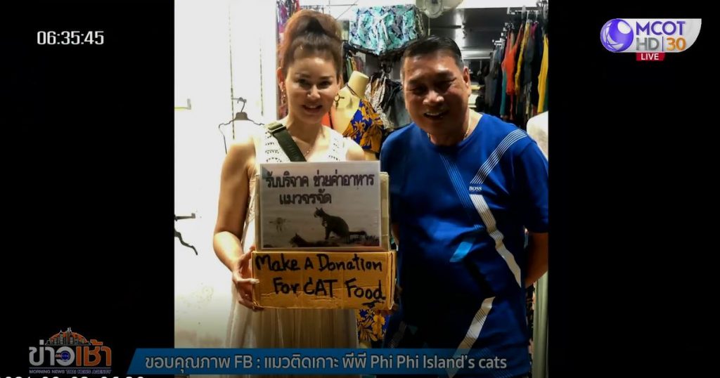 ก่อนหน้านี้เจ้าหน้าที่องค์การบริหารส่วนตำบลอ่าวนาง และปศุสัตว์อำเภอเมืองกระบี่ เข้าสำรวจพบว่ามีแมวติดอยู่บนเกาะนับพันตัว ซึ่งกลุ่มคนรักแมวได้แบ่งเวรให้อาหารมื้อเช้าและเย็น จึงทำให้แมวยังมีความอ้วนท้วนสมบูรณ์ หลังได้รับแนะนำจากนักท่องเที่ยวที่เดินทางมาพบเห็นแมวว่าควรรับบริจาคอาหารจากกลุ่มคนรักแมวด้วยกัน และแนะนำให้เปิดเพจ จึงได้เปิดเพจ “แมวติดเกาะพีพี” มีผู้ติดตามและจัดส่งอาหารมาให้จำนวนหนึ่ง พร้อมให้กำลังใจเข้ามาอย่างต่อเนื่อง