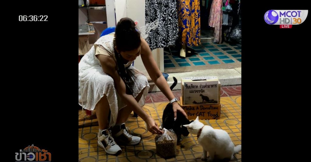 ผู้ใจบุญรายหนึ่งพบแมวจำนวนมากอยู่ในอาการหิว จึงเริ่มตระเวนให้อาหารแมวครั้งแรกตั้งแต่เดือนมีนาคม 63 จนถึงปัจจุบัน โดยควักเงินส่วนตัวซื้ออาหารแมวทุก 3 วัน 20 กิโลกรัม เพื่อไม่ให้แมวอด แม้ที่ผ่านมาจะมีหน่วยงานมาช่วยจับแมวทำหมัน และมีเจ้าของแมวเดิมเดินทางรับกลับไปแล้วบางส่วน แต่เนื่องจากแมวขยายพันธุ์อย่างรวดเร็ว ประชากรแมวจึงเพิ่มขึ้นอย่างต่อเนื่อง และต้องกลายเป็นแมวจรอยู่บนเกาะพีพี