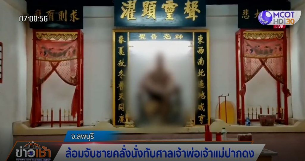ลพบุรี 3 ก.ย. – ตำรวจและชาวบ้านช่วยกันล้อมจับชายอายุประมาณ 30-40 ปี ทำลายข้าวของภายในศาลเจ้าพ่อเจ้าแม่ปากดง เพื่อนเผยชายคนดังกล่าอดีตเคยเป็นข้าราชการทหาร แต่ประสบอุบัติเหตุกระทบกระเทือนทางสมอง